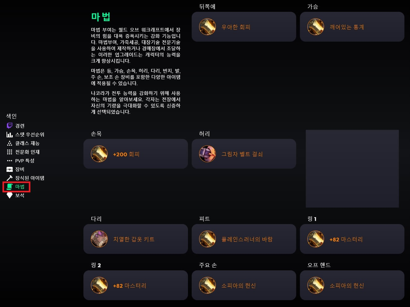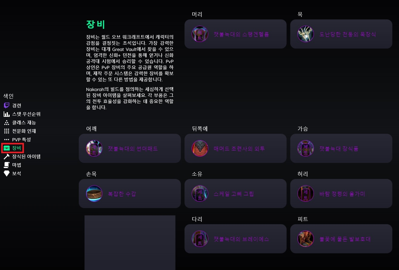 와우를 할 때 같은 직업의 상위 랭커의 정보를 참고하는 것은 성장하는데 굉장히 도움이 됩니다.