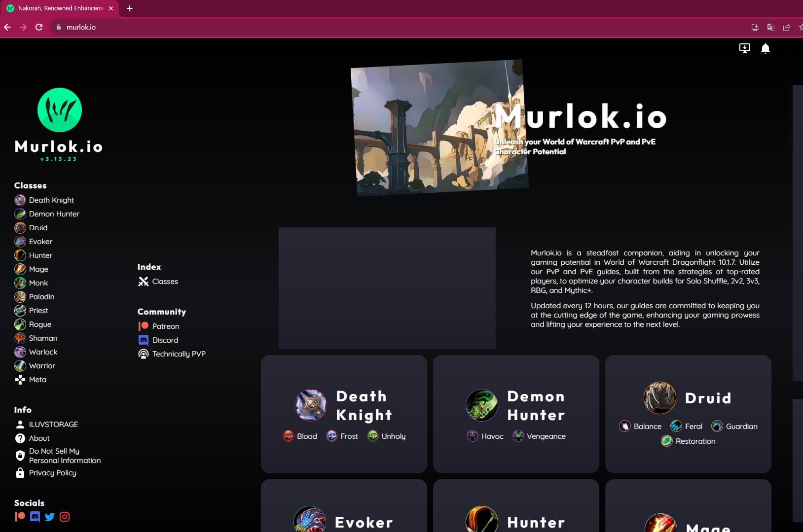 아래처럼 Murlok.io 사이트에 들어가면 직업별로 선택이 가능합니다.