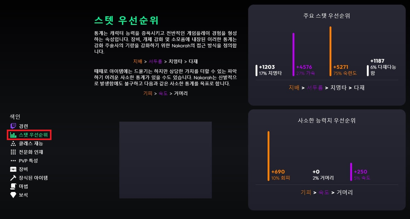 스탯 우선순위부터 보입니다.